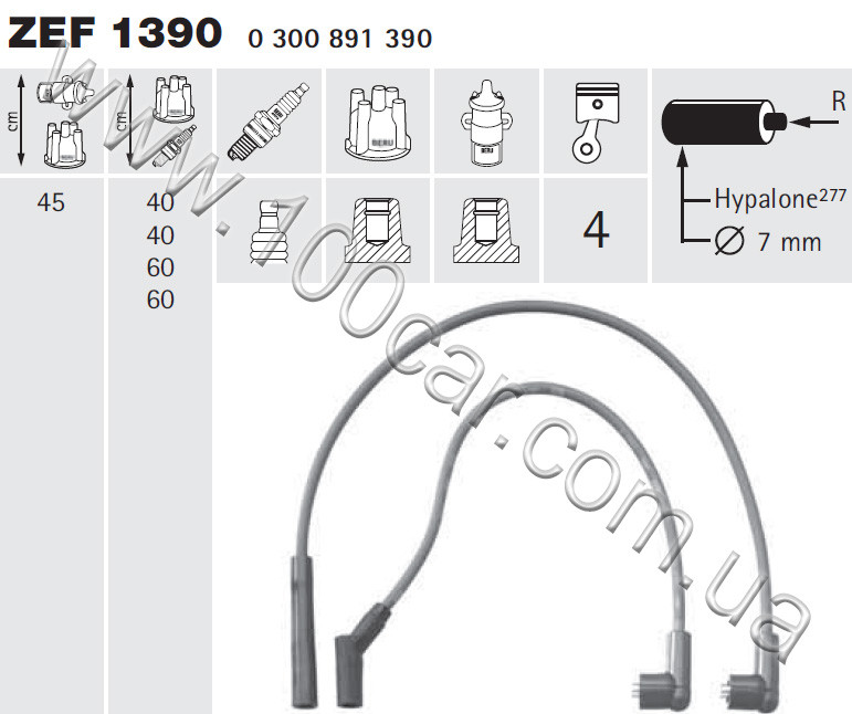 ZEF 1390, Дроти запалювання Beru (к-т) ROVER 111 1,1, 114 1,4, 214 i 1,4
